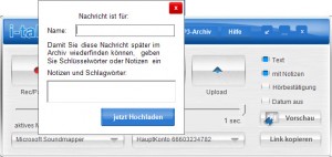 Empfänger-Namen und Notizen zur Nachricht eingeben können.